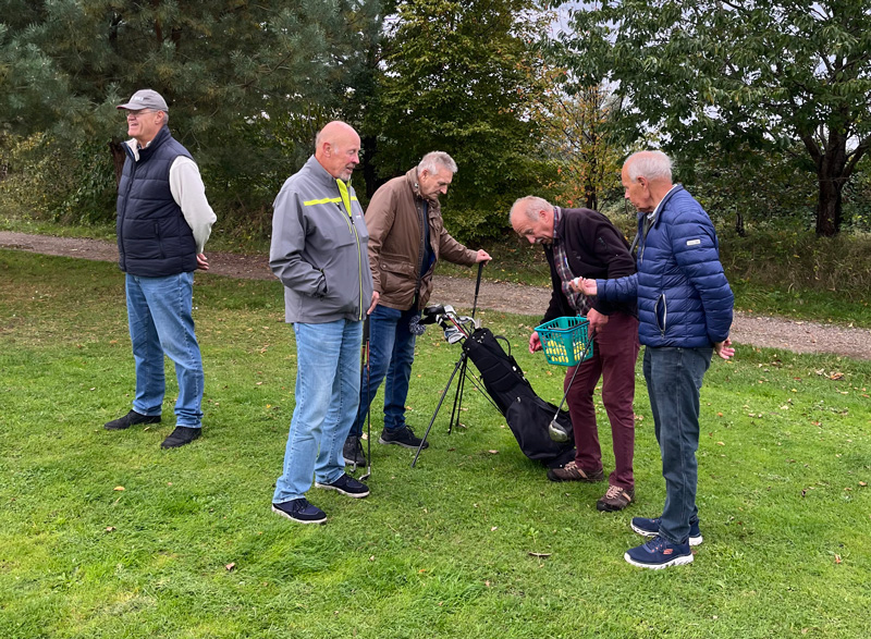 Vor Ort gab es eine Unterweisung auf der „Driving“ Range durch Reimer Karstens und Peter Neugebauer. Da wir alle mit einem Schläger umgehen können, hatten wir viel Spaß sowohl beim Abschlag als auch beim „Einputten“.